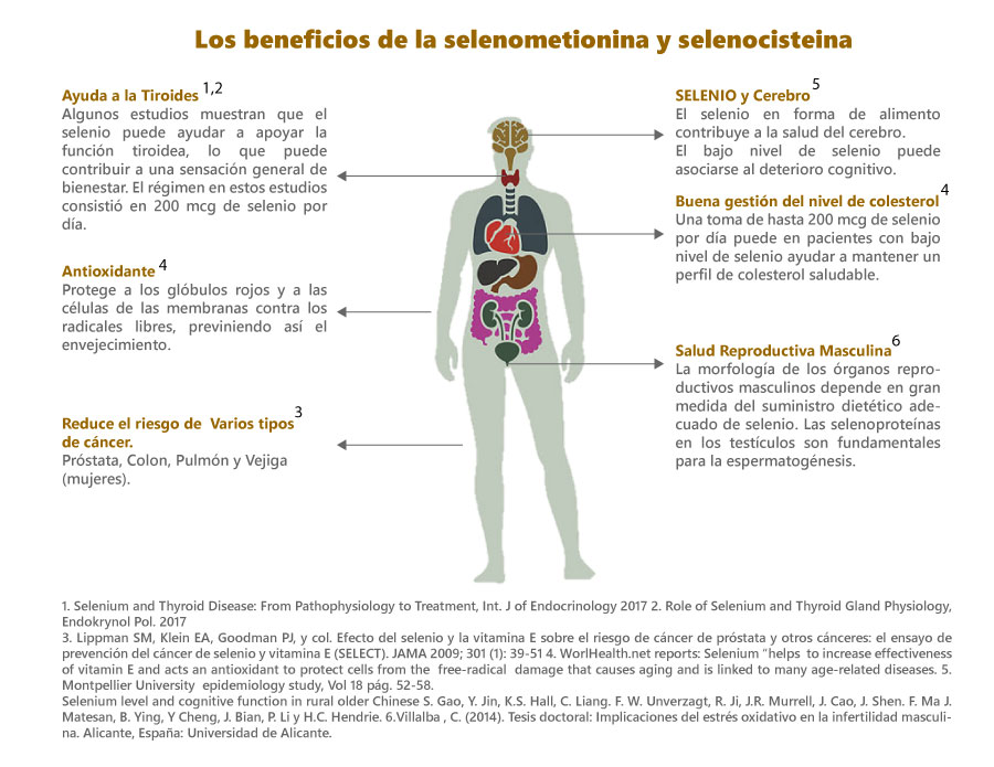 Fertilidad: El selenio es importante en la fertilidad masculina, siendo requerido para la biosíntesis de testosterona y la formación y normal desarrollo de los espermatozoides.